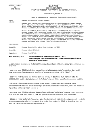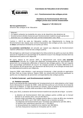 Ce rapport présente les modalités de calcul et de répartition des dotations de fonctionnement (forfait d'externat part fonctionnement matériel et part personnel) destinées aux 13 collèges privés sous contrat d'association avec l'Etat.