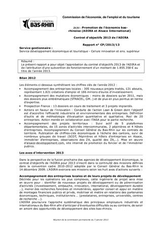 Le présent rapport a pour objet l'approbation du contrat d'objectifs 2013 de l'ADIRA et de l'attribution d'une subvention de fonctionnement d'un montant de 1.855.358 € au titre de l'année 2013.