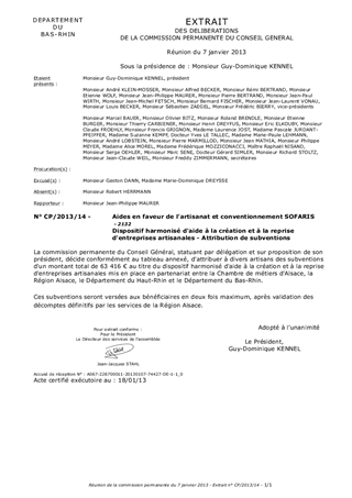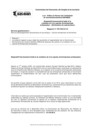 Le présent rapport a pour objet de soumettre à l'approbation de la Commission Permanente du Conseil Général différents dossiers de soutien à la création et à la reprise d'entreprises artisanales.