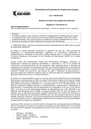 Le présent rapport a pour objet de confirmer l'engagement du Département à soutenir le projet Nanomat inscrit au titre du Contrat de Projets Etat-Région 2007-2013 dans sa dernière phase, ainsi que de porter à validation le contrat d'engagement qui lie les financeurs du projet d'Institut Hospitalo-Universitaire de Strasbourg.