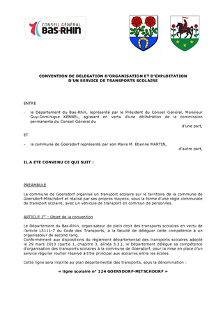 Ce rapport a pour objet de renouveler et d'autoriser la signature de conventions conclues entre le Département et différentes communes ou groupements de communes qui assurent des services de transports scolaires en régie. Par ailleurs, différentes associations de parents d'élèves et d'étudiants handicapés organisent directement des services de transport scolaire sur délégation du Conseil Général avec son concours financier. Il convient d'une part de renouveler des délégations pour maintenir le service de transport scolaire et d'autre part d'établir une convention financière entre le Département et la Communauté de Communes du Ried de Marckolsheim.