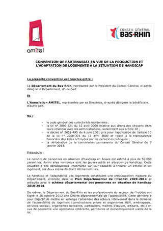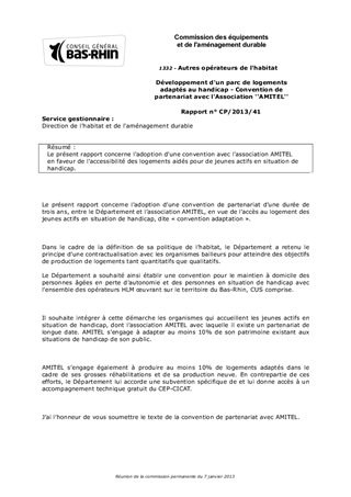 Le présent rapport concerne l'adoption d'une convention avec l'association AMITEL en faveur de l'accessibilité des logements aidés pour de jeunes actifs en situation de handicap.