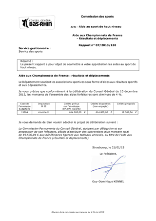 Le présent rapport a pour objet de soumettre à votre approbation les aides au sport de haut niveau.