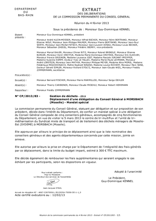 Déplacement d'une délégation du Conseil Général à MORSBACH (Moselle) - Mandat spécial
