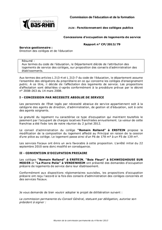 Aux termes du code de l'éducation, le Département décide de l'attribution des logements de service des collèges, sur proposition des conseils d'administration des établissements.