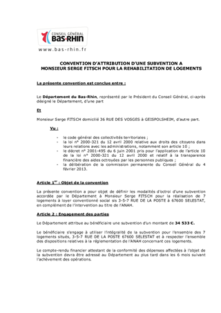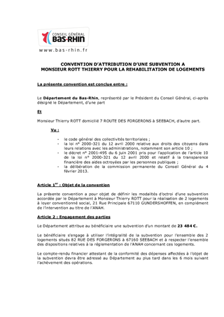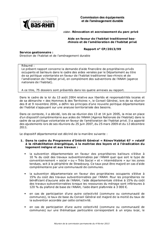 Le présent rapport concerne la demande d'aide financière de propriétaires privés occupants et bailleurs dans le cadre des aides versées par le Département au titre de sa politique volontariste en faveur de l'habitat traditionnel bas-rhinois et de l'amélioration de l'habitat privé, en complément des subventions de l'ANAH (agence nationale de l'habitat). A ce titre, 75 dossiers sont présentés dans les quatre annexes au rapport.