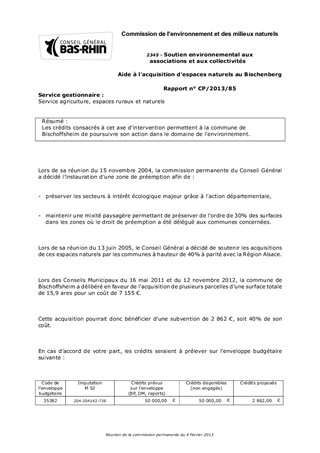Aide à l'acquisition d'espaces naturels au Bischenberg
