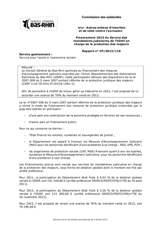 Financement 2013 du Service des mandataires judiciaires de l'UDAF en charge de la protection des majeurs