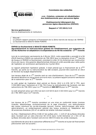 Le présent rapport concerne le financement de la 2ème tranche de travaux de l'EHPAD Le Soultzerland à SOULTZ-SOUS-FORETS