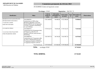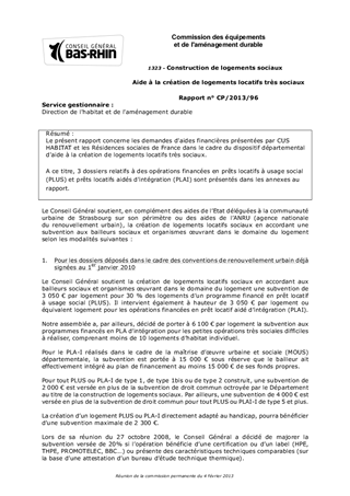 Le présent rapport concerne les demandes d'aides financières présentées par CUS HABITAT et les Résidences sociales de France dans le cadre du dispositif départemental d'aide à la création de logements locatifs très sociaux. A ce titre, 3 dossiers relatifs à des opérations financées en prêts locatifs à usage social (PLUS) et prêts locatifs aidés d'intégration (PLAI) sont présentés dans les annexes au rapport.