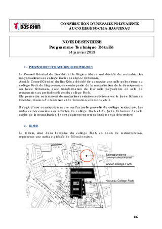 Le présent rapport a pour objet de soumettre pour validation du Programme Technique Détaillé des Travaux visant la construction de la salle polyvalente sur le site du collège Foch de Haguenau.