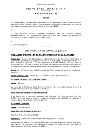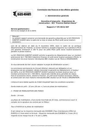 Le présent rapport concerne une demande de garantie présentée par la SCI PROCIVIS HABITAT ALSACE dans le cadre de la mise en place du PSLA (prêt social location-accession).