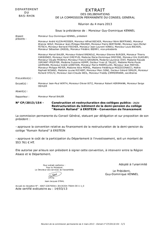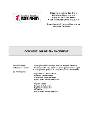 Restructuration du bâtiment de la demi-pension du collège ''Romain Rolland'' à ERSTEIN - Convention de financement