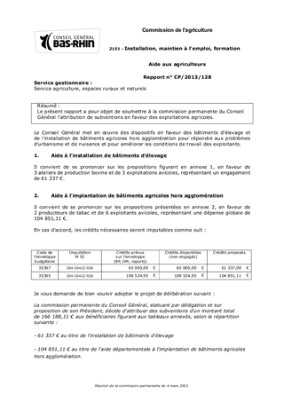 Le présent rapport a pour objet de soumettre à la commission permanente du Conseil Général l'attribution de subventions en faveur des exploitations agricoles.