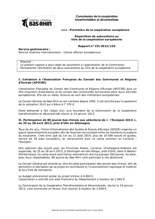 Le présent rapport a pour objet de soumettre à l'approbation de la Commission Permanente l'attribution de deux subventions au titre de la coopération européenne.