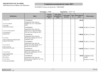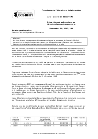 Au titre de son engagement départemental pour la jeunesse, le Conseil Général subventionne l'organisation des classes de découverte que réalisent tant les écoles élémentaires et maternelles que les collèges publics et privés.
