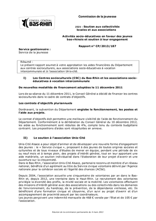 Le présent rapport soumet à votre approbation les aides financières du Département aux centres socioculturels, aux associations socio-éducatives à vocation intercommunale et à l'association Unis-cité.