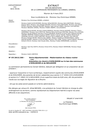 Acquisition du chemin d'AVOLSHEIM sur le ban des communes d'AVOLSHEIM et de WOLXHEIM