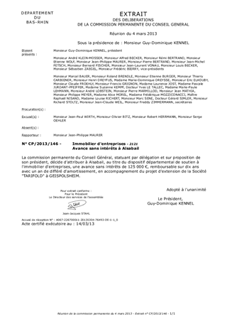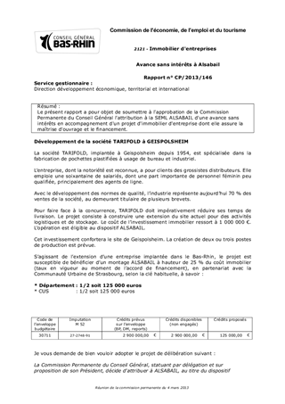 Le présent rapport a pour objet de soumettre à l'approbation de la Commission Permanente du Conseil Général l'attribution à la SEML ALSABAIL d'une avance sans intérêts en accompagnement d'un projet d'immobilier d'entreprise dont elle assure la maîtrise d'ouvrage et le financement.