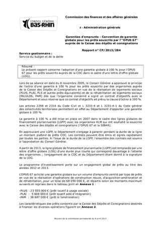 Le présent rapport concerne l'adoption d'une garantie globale à 100 % pour l'OPUS 67 pour les prêts souscrits auprès de la CDC dans le cadre d'une lettre d'offre globale (LOG).