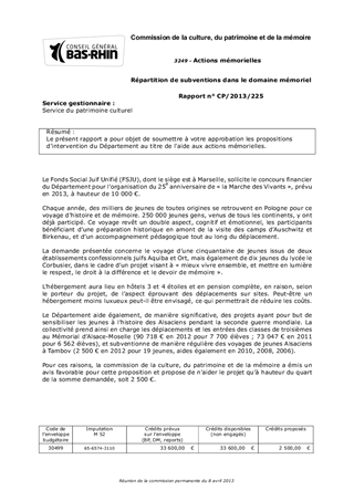 Le présent rapport a pour objet de soumettre à votre approbation les propositions d'intervention du Département au titre de l'aide aux actions mémorielles.