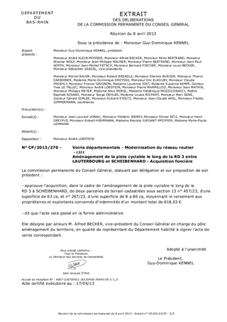 Aménagement de la piste cyclable le long de la RD 3 entre LAUTERBOURG et SCHEIBENHARD - Acquisition foncière