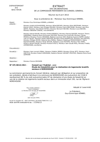 Le présent rapport concerne la demande de subvention départementale de la Commune de Nordhouse pour une étude de faisabilité en vue de la création de logements locatifs sociaux dans un immeuble sis 104 rue de l'Eglise.
