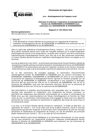 Il est demandé au Conseil Général de se prononcer sur l'opportunité d'ordonner l'opération d'aménagement foncier de DURNINGEN et KIENHEIM avec extension sur les communes de GOUGENHEIM et de SCHNERSHEIM