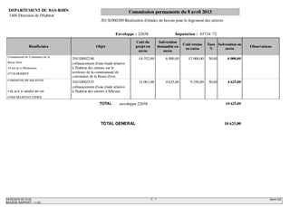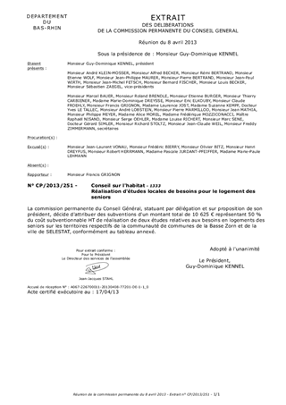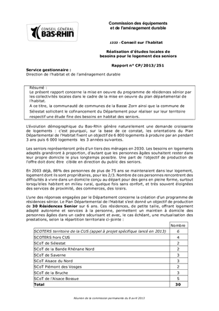 Le présent rapport concerne la mise en oeuvre du programme de résidences sénior par les collectivités locales dans le cadre de la mise en oeuvre du plan départemental de l'habitat. A ce titre, la communauté de communes de la Basse Zorn ainsi que la commune de Sélestat sollicitent le cofinancement du Département pour réaliser sur leur territoire respectif une étude fine des besoins en habitat des seniors.