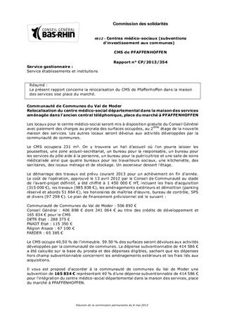 Le présent rapport concerne la relocalisation du CMS de Pfaffenhoffen dans la maison des services sise place du marché.