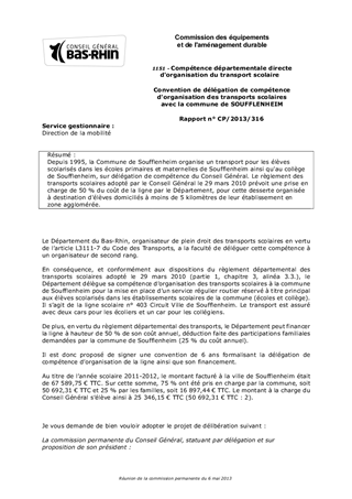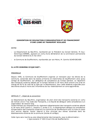 Convention de délégation de compétence d'organisation des transports scolaires avec la commune de SOUFFLENHEIM