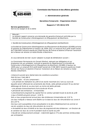 Le présent rapport concerne une demande de garantie d'emprunt sollicitée par la Société de Construction d'Aménagement et d'Equipement de Bischheim.