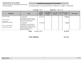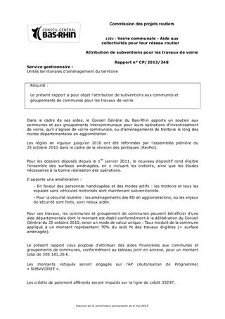 Le présent rapport a pour objet l'attribution de subventions aux communes et groupements de communes pour les travaux de voirie.