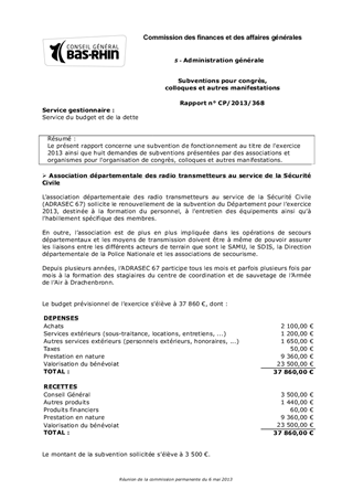 Le présent rapport concerne une subvention de fonctionnement au titre de l'exercice 2013 ainsi que huit demandes de subventions présentées par des associations et organismes pour l'organisation de congrès, colloques et autres manifestations.