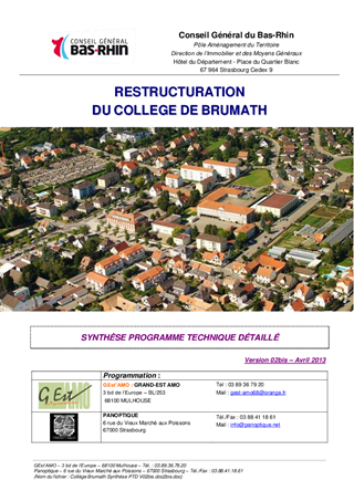 Restructuration et extension du collège de BRUMATH - Programme technique détaillé