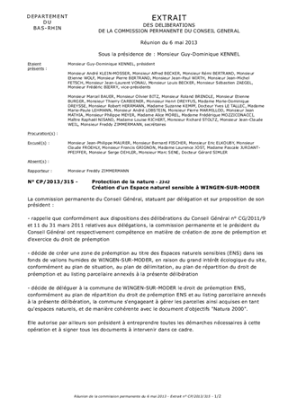 Lors de sa réunion du 11 décembre 2000, le Conseil Général a décidé de renforcer sa politique en faveur des espaces naturels en mettant en oeuvre son droit de préemption (article L142-1 et suivant du Code de l'Urbanisme) au cas par cas dans les sites répondant aux objectifs de la politique de gestion et de protection des espaces naturels. Le Schéma Départemental des Espaces naturels a confirmé l'importance de cet outil de protection. Dans ce cadre, le Département a été sollicité par la commune de Wingen-sur-Moder afin de préserver les milieux remarquables et la qualité paysagère de ses fonds de vallons humides. Après deux années de travail et de concertation locale, il est proposé d'instaurer une zone de préemption sur les sites retenus.