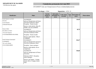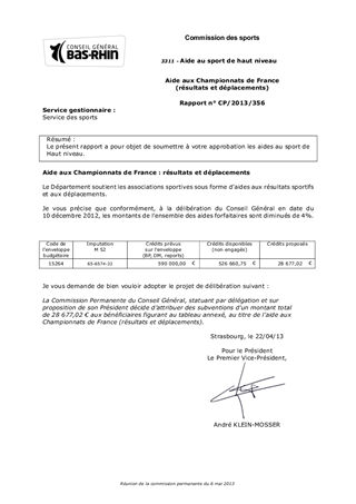 Aide aux Championnats de France (résultats et déplacements)