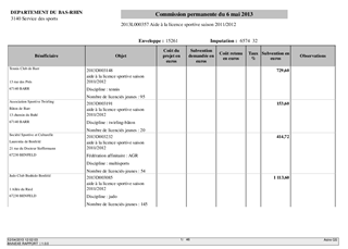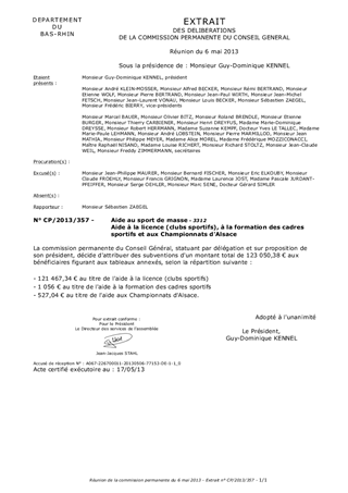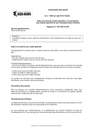 Aide à la licence (clubs sportifs), à la formation des cadres sportifs et aux Championnats d'Alsace