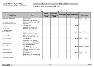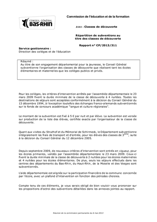 Au titre de son engagement départemental pour la jeunesse, le Conseil Général subventionne l'organisation des classes de découverte que réalisent tant les écoles élémentaires et maternelles que les collèges publics et privés.