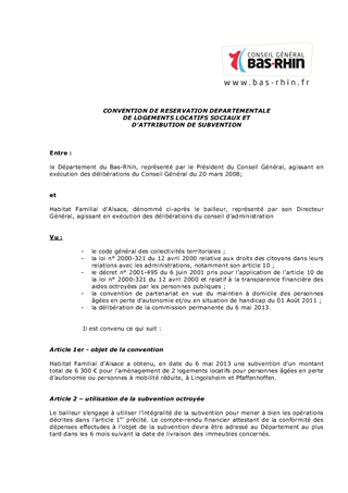 Le présent rapport concerne les demandes d'aides financières présentées par Habitat des Salariés d'Alsace, Habitat Familial d'Alsace et le Nouveau Logis de l'Est concernant l'adaptation de logements locatifs sociaux pour des locataires en situation d'handicap et/ou en perte d'autonomie.