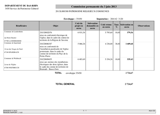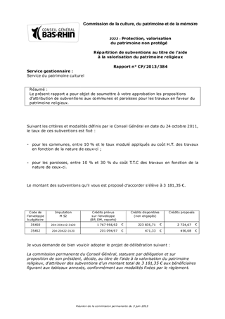 Le présent rapport a pour objet de soumettre à votre approbation les propositions d'attribution de subventions aux communes et paroisses pour les travaux en faveur du patrimoine religieux.