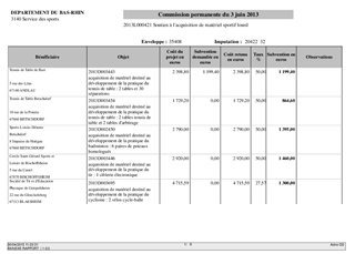 Aide aux manifestations sportives, à l'acquisition de matériel sportif et aux conventions d'objectifs et de développement sportif