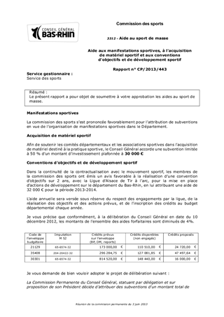 Le présent rapport a pour objet de soumettre à votre approbation les aides au sport de masse.