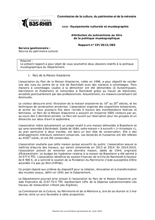 Le présent rapport a pour objet de vous soumettre deux dossiers relatifs à la politique muséographique du Département.