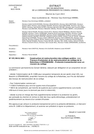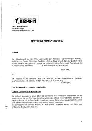 Travaux d'extension et de restructuration du collège de la Robertsau à STRASBOURG - Protocole transactionnel avec un riverain du collège