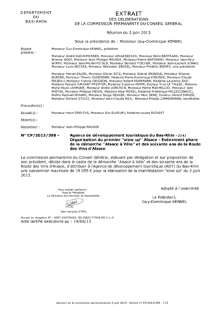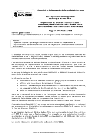 Le présent rapport a pour objet la contribution financière du Département à l'organisation du 1er slow Up Alsace porté par l'Agence de Développement Touristique du Bas-Rhin.