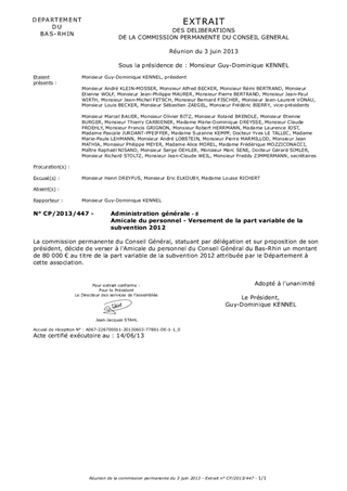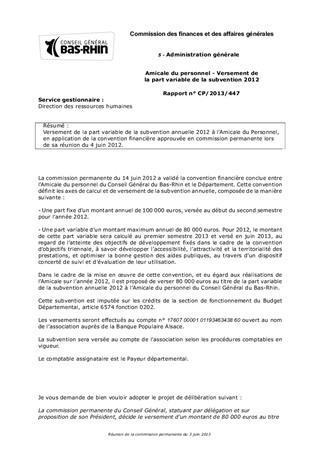 Versement de la part variable de la subvention annuelle 2012 à l'Amicale du Personnel, en application de la convention financière approuvée en commission permanente lors de sa réunion du 4 juin 2012.