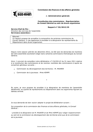 Ce rapport propose de compléter la composition de certaines commissions du Conseil Général. Il vise également à procéder à la désignation de représentants du Département dans divers organismes.