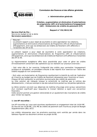Le présent rapport a pour objet de soumettre à votre approbation les créations, augmentations et diminutions d'Autorisations de Programme (AP) et d'Autorisations d'Engagement, ainsi que les échéanciers de Crédits de Paiement (CP) afférents à l'ensemble des AP et AE.
