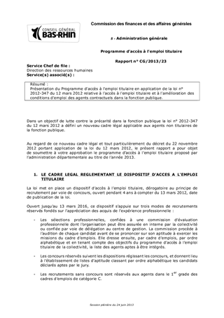 Présentation du Programme d'accès à l'emploi titulaire en application de la loi n° 2012-347 du 12 mars 2012 relative à l'accès à l'emploi titulaire et à l'amélioration des conditions d'emploi des agents contractuels dans la fonction publique.